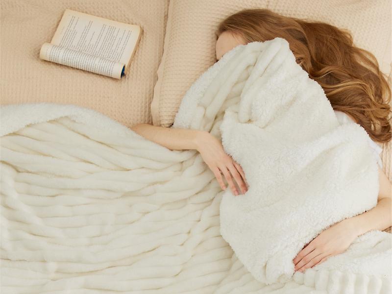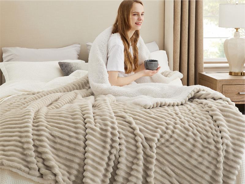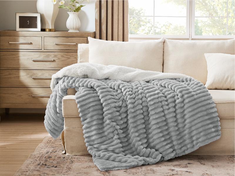 【Deal 'S for You】Bedsure Striped Sherpa Blanket Super Soft Cozy Plush Fleece Flannel Solid Modern Lightweight Comforter