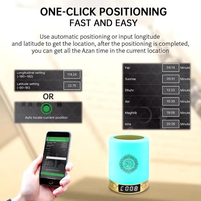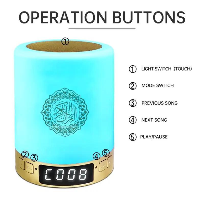 Portable Quran Speaker with ,Azan Bluetooth & Touch LED Light - Remote/App Controlled Islamic Night Lamp for Home Decor Home/Office Touchcontrol Fathersdaygift