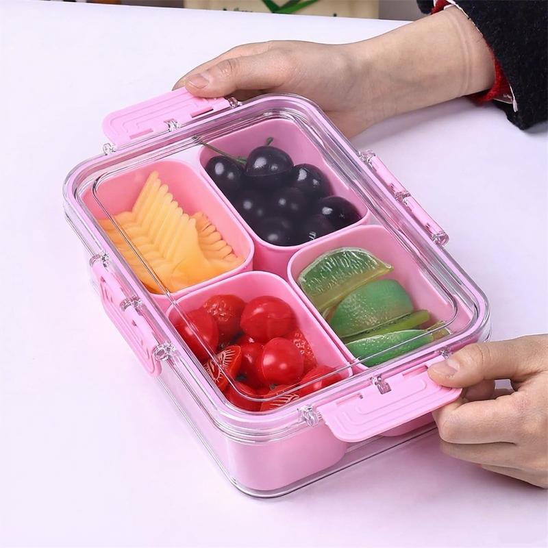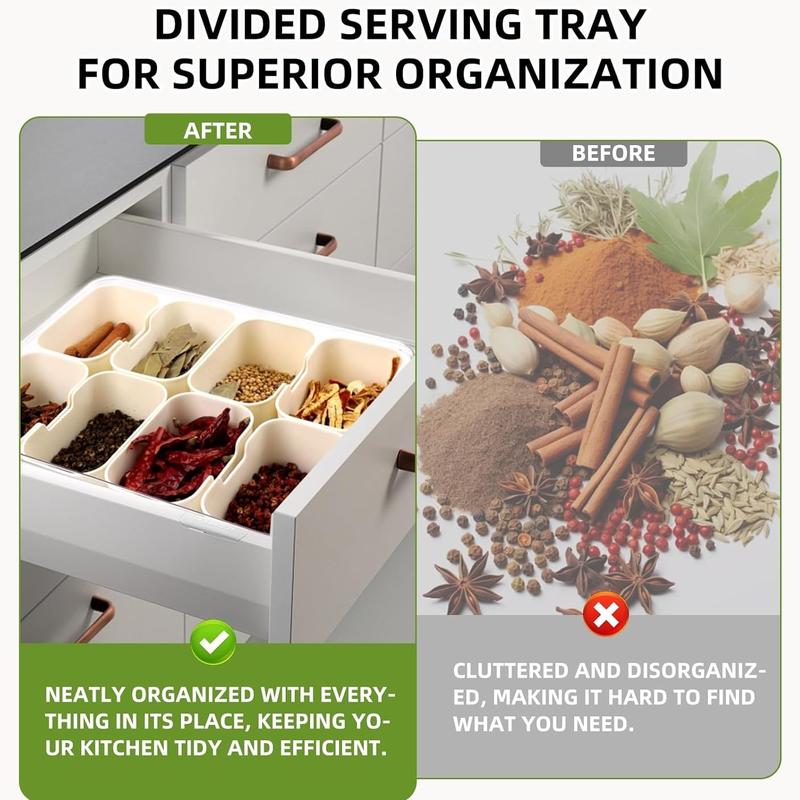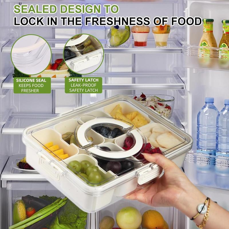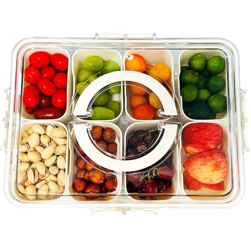 【Portable Design】: Featuring a split service tray with a lid and handle for easy transport of snacks and meals.