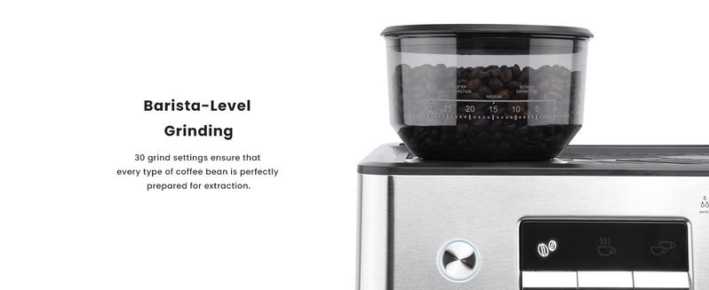 🌱 30 Grind Settings – Adjustable grinder for customized espresso shots, fresh every time.
