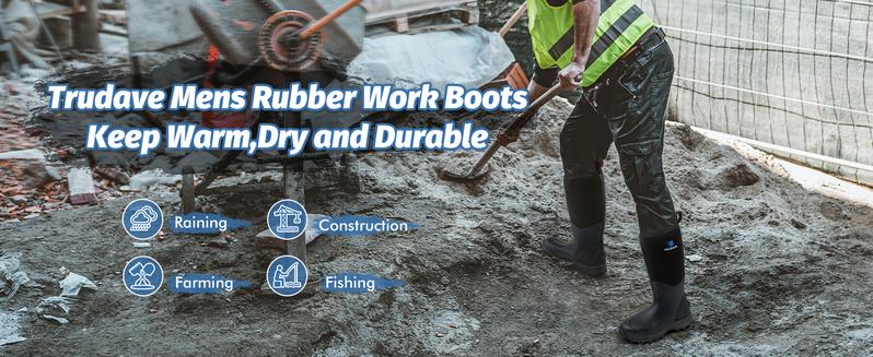 Trudave Rubber Boots for Men & Women, Waterproof Insulated Work Rain Boots, Anti-Slip Outdoor Mud Boots for Working, Hunting, Fishing Shoe Rainproof