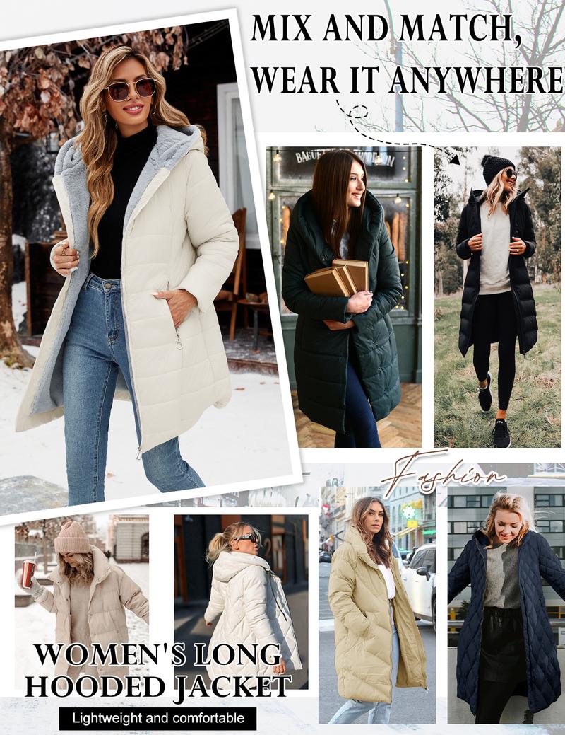 - Versatile Coat Jacket: Long puffer jackets, long sleeve coats, furry coats for women, fluffy jackets for women, winter jackets for women, sherpa fleece jackets for women, full zip coats, womens coats mid length, hooded jackets, slim fit outwear, fall clothes for women, going out outfits for women, long parka coats for women, down coats with pockets. Our womens puffer jacket is great as Christmas, New Year, Thanksgiving, Mothers Day presents for family and friends
